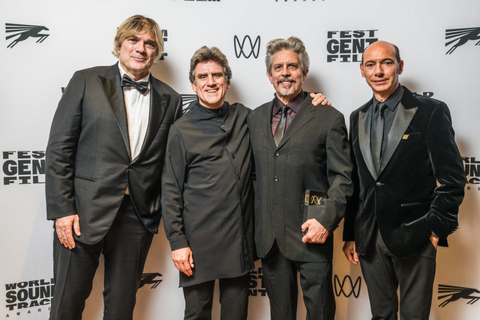 World Soundtrack Awards 2019. Fltr: Marijke Vandebuerie (General Manager Ghent Film Festival), Marco Beltrami, Dirk and Wim De Witte (Artistic Director Ghent Film Festival)