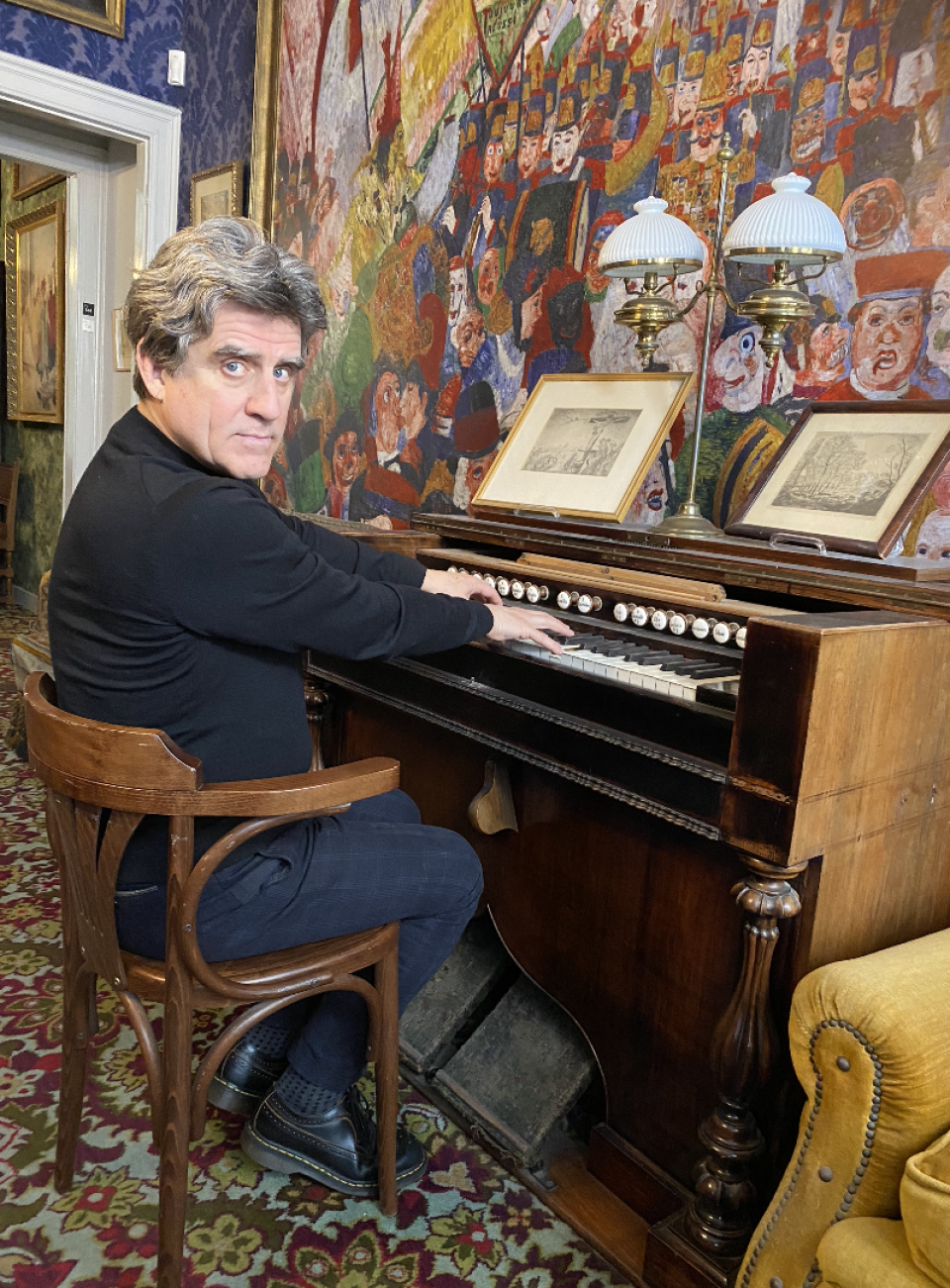 Playing James Ensor’s organ in front of Christ’s Entry into Brussel