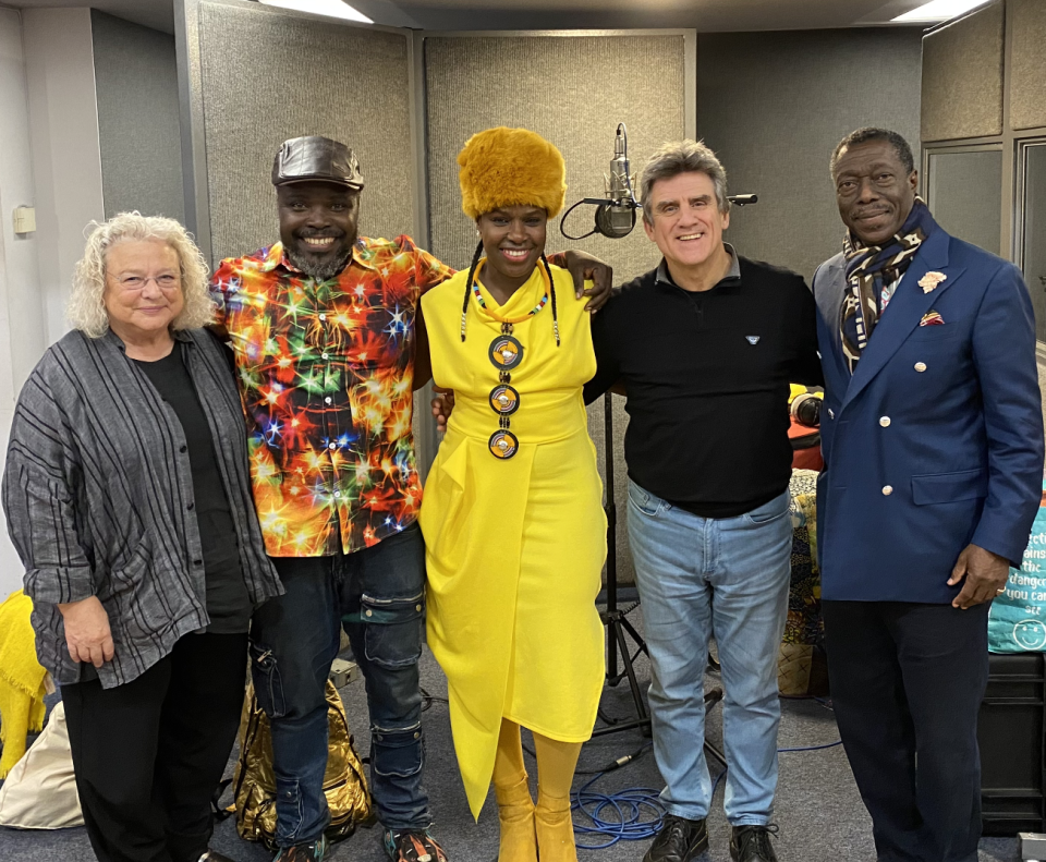 With Maggie Rodford, Afla Sackey, Eno Williams and Albert Esiri at AIR EDEL Studio’s London